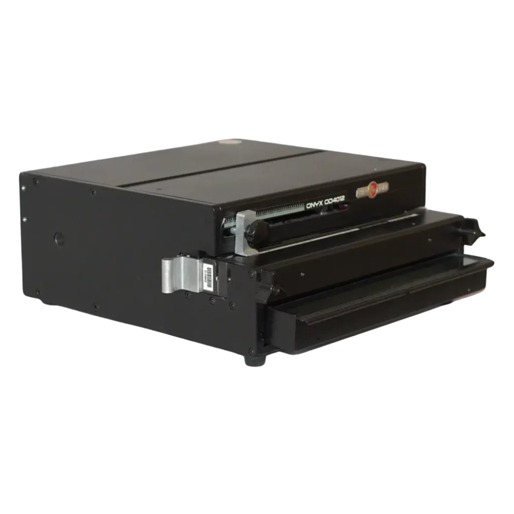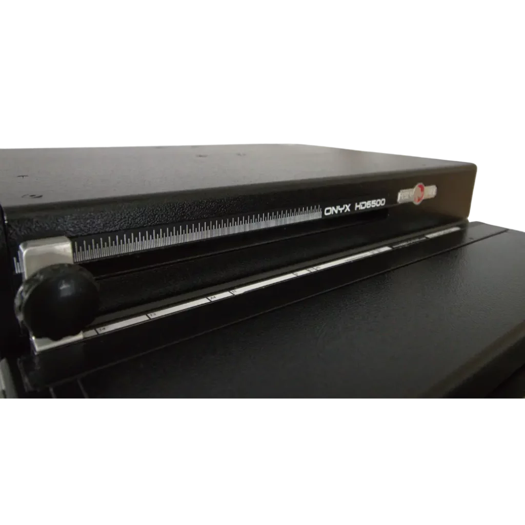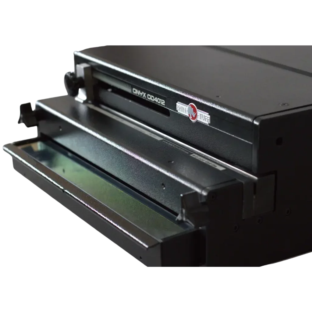 The Onyx OD4012 is a heavy-duty 11" open-ended electric punch designed for fast, precise punching in a variety of binding formats. Featuring Rhin-O-Tuff’s patented E-Z Change™ die system and Swing Away Die Pin Retainer, it supports up to 12 punch patterns including comb, wire, coil, and 3-hole formats. With up to 30-sheet punching capacity, multiple activation options, and rugged construction, the OD4012 is ideal for commercial binding operations requiring durability, speed, and flexibility.