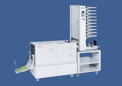 FC-P9 / FC-P9 is a compact, efficient offline bookletmaker that combines jogging, stapling, folding, and fore-edge trimming in one streamlined system. Designed for seamless integration with Horizon QC-S collators, it produces flat-finished, professional booklets at speeds up to 33 per minute. Ideal for manuals, catalogs, and folded documents, the system delivers consistent results with minimal operator intervention.