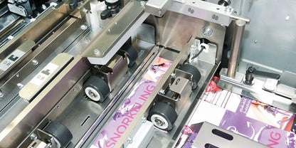 The Horizon SmartSlitter SMSL-100 is a compact, multi-function sheet processor combining cutting, creasing, perforating, and slitting in one pass. Engineered for high-precision digital finishing, it supports a wide range of applications—from business cards to covers—while offering barcode-driven job automation and camera-based alignment correction for consistent, accurate results.